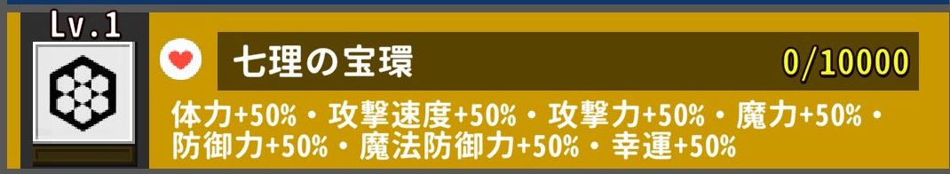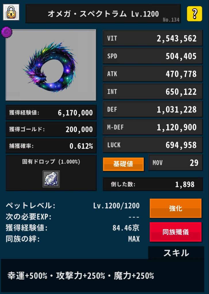 カンストすると幸運250%だったのが500%になり、性能がさらに強化されます!物理で強敵と戦うときに有用そうですね!!