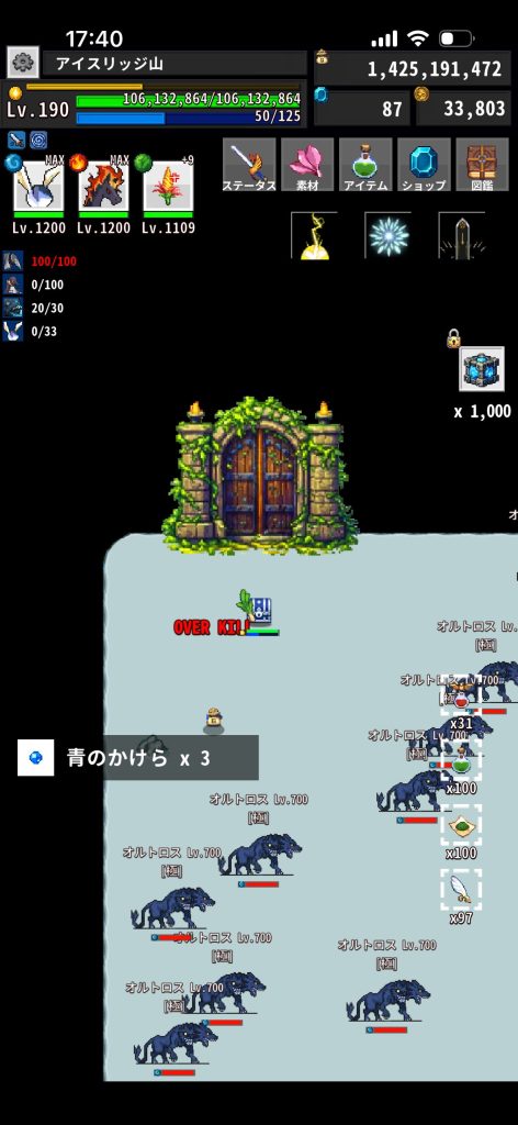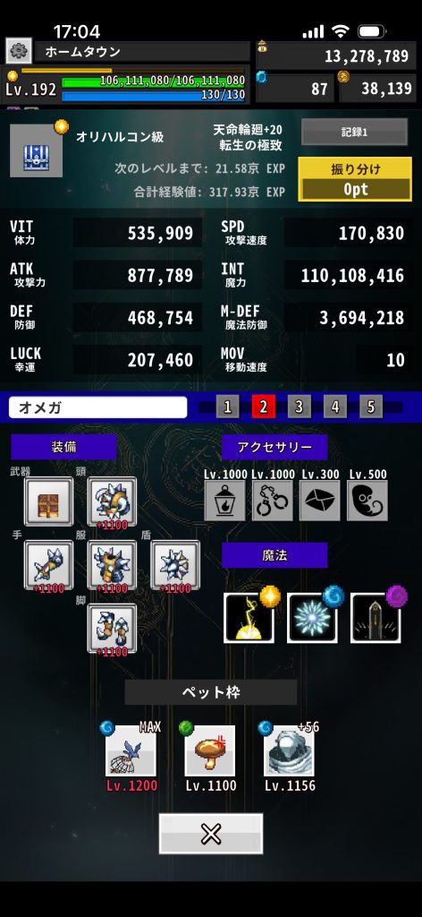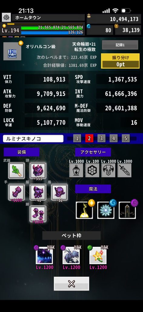 INT・DEF・MDEFを必要数までふって、残りをATK・LUKにふっていきます。ATK・LUKは必須ではないですが、ここにある程度ステータスをふれるとレアスポーンの動く石碑を倒すことができるので、宙の理集めも並行して進めることができます。
