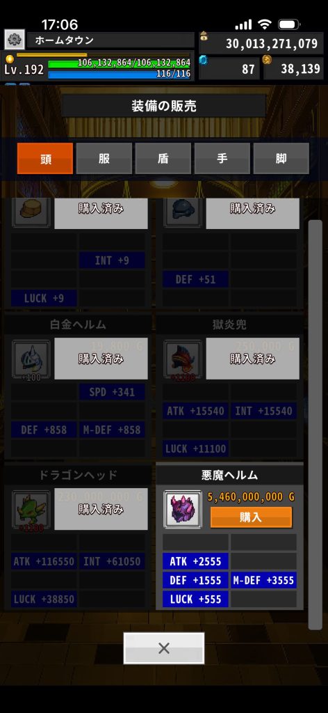 オメガ捕獲が終わりゴールドが余ってきたので、ついに悪魔装備の購入・強化に手を出していきます!!